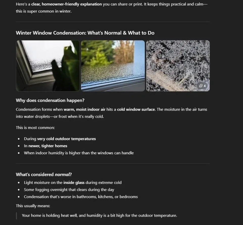 Asking ChatGPT: “Homeowner education on window condensation in winter months”